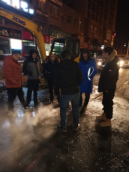 19日晚上10時,歷經(jīng)15個小時搶修完畢。搶修結(jié)束后,搶修師傅們從挖開的坑里出來后,身穿的工作服上沾滿了泥漿,衣服也被熱氣蒸濕了,時值寒冬,室外溫度零下16℃,衣服很快被凍硬。一位剛從坑里出來打著哆嗦的搶修師傅告訴筆者,管道里水的溫度近90°,溝里熱氣騰騰,身上都冒汗呢,但一出地面,100多度的溫差,感覺直接就凍到骨頭里了,腿都凍直了,邁不了步。