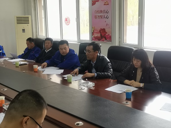 4月10日下午,城發公司副總經理、物業公司董事長趙永強深入物業公司管轄的金城小區項目處召開為民解難題專題研討會,城發物業公司黨支部書記娜仁、經理史濤及全體職工參加會議。