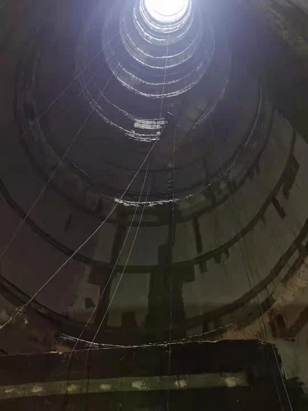檢查小組通過采用外力敲擊及肉眼觀察的方式對B車間煙囪內壁防腐層施工質量進行詳細檢查。