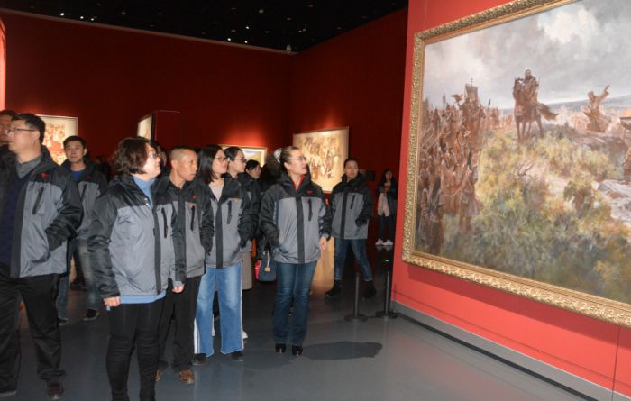 11月16日下午,橋靠分公司黨支部組織黨員、預(yù)備黨員、重點(diǎn)培養(yǎng)對象、積極分子55人,來到了內(nèi)蒙古美術(shù)館,參觀革命老區(qū)與改革開放同行慶祝改革開放40周年攝影書畫展。